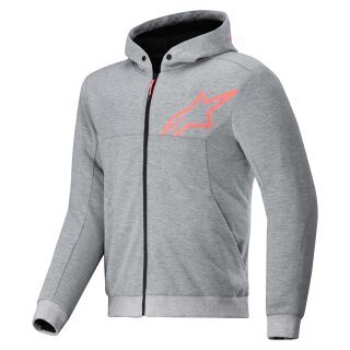 Alpinestars Chrome V2 Motorrad-Hoodie grau neonrot, abriebfester Hoodie mit Protektoren an Schulter und Ellbogen für maximalen Komfort. mehr