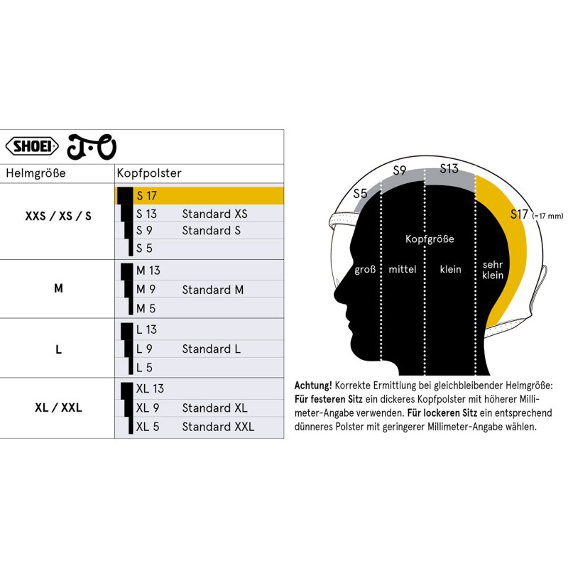 Kopfpolster für den J.O Jethelm von Shoei in verschiedenen Größen und Stärken zum idividuellen anpassen an Deinen Kopf. mehr